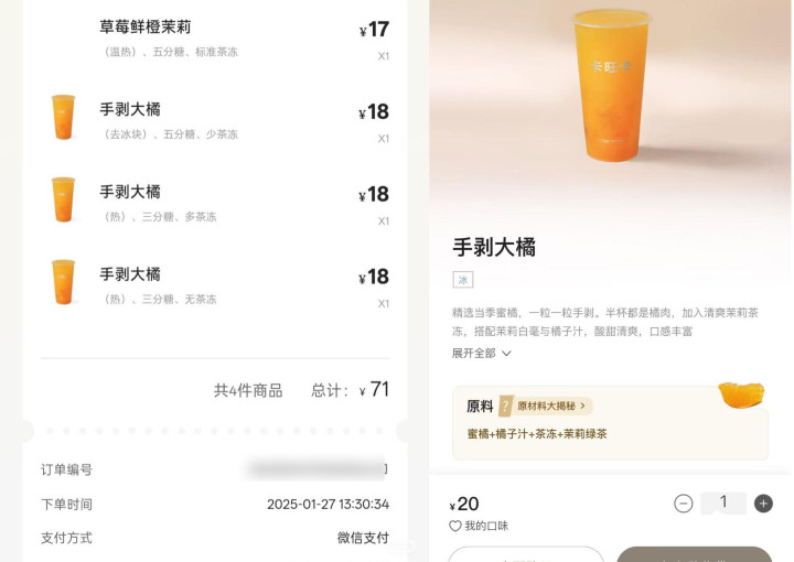 不过,根据消费者反馈,这并非卡旺卡第一次涨价。有消费者告诉南都湾财社记者,卡旺卡的“手剥大橘”2022年推出时仅16元,2023年才涨至18元,如今涨到20元,黑全套奶茶刚推出时是15元,现在则是17元。也有卡旺卡的忠实消费者反映,2023年,“椰子清凉补”一杯15元,今年5月价格上涨至18元,该消费者称,“以前经常带‘椰汁清凉补’给朋友家人喝,今年(卡旺卡)却变成了高攀不起的样子”。